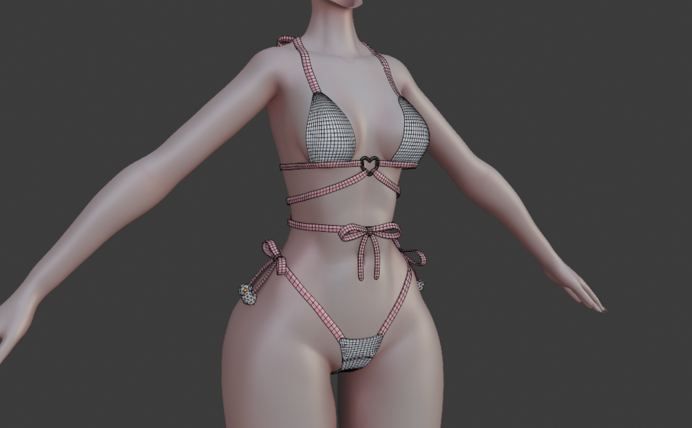 This bikini is made from scratch by myself. It comes rigged to panda's base and it is 19k tris. Also comes with textures, and the pom poms look really cool in unity with a fur shader :)