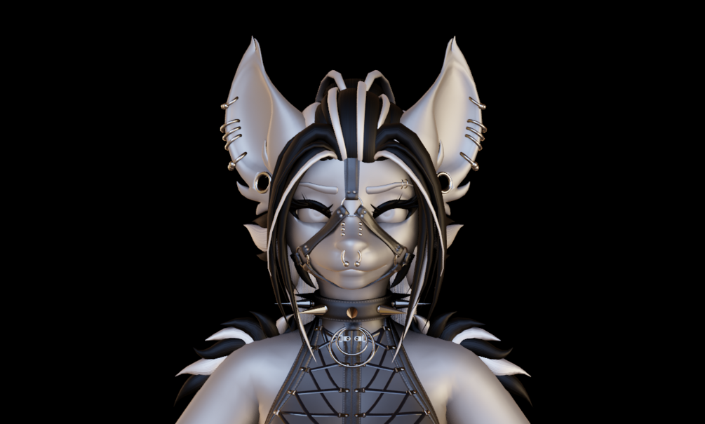 • Comes with VRC Visemes and shape keys to hide the ballgag part of the muzzle as well as a shape key to hide the entire muzzle